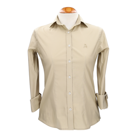 Camisa Mujer Popelín Camel con Bordado Amazonas Marino
