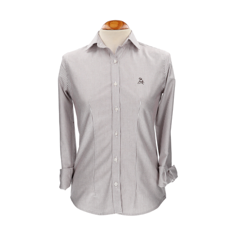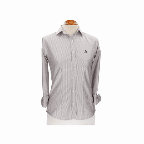 Camisa Mujer Rayas Marrón con Bordado Amazona Marino