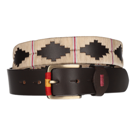CINT. MARRON BORDADO AZUL-ROJO-BEIGE