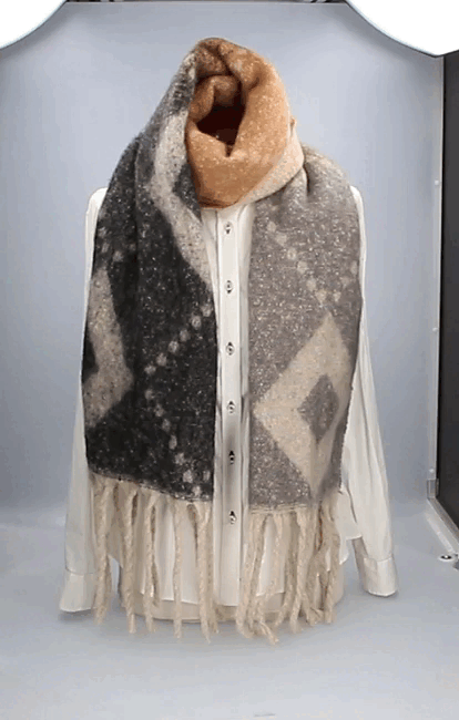Bufanda Reversible con Estampado de Ciervo Verde/Gris