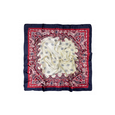 Pañuelo Borde Marino Adornos Cachemire Rojo y Centro Beige
