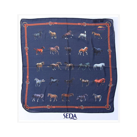 Pañuelo Seda Fondo Marino Adorno Caballos