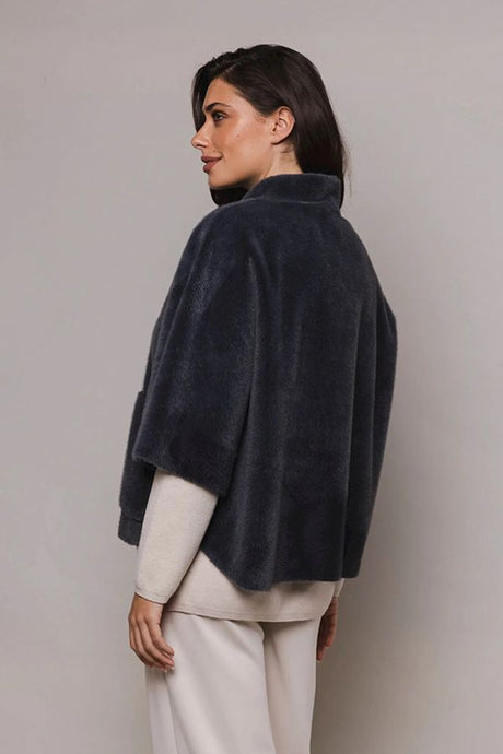 Poncho Taupe con Rayas Combinada Crudo-Taupe