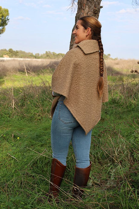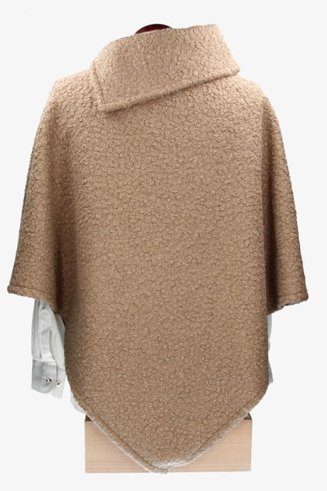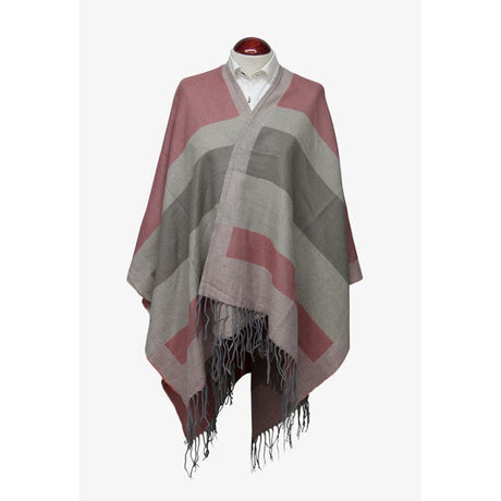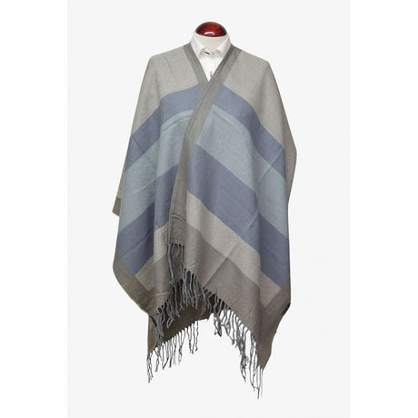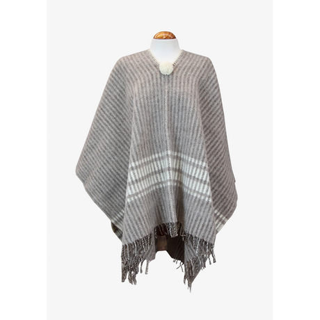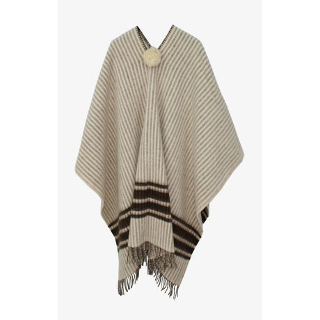 Taupe Poncho with Combined Stripes Ecru-Taupe