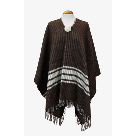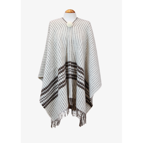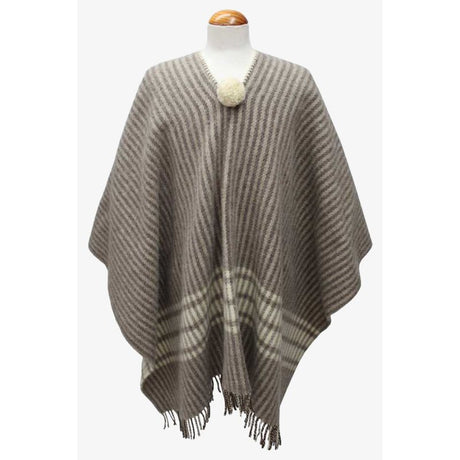 Dark Taupe Poncho with Wide Ecru Stripes