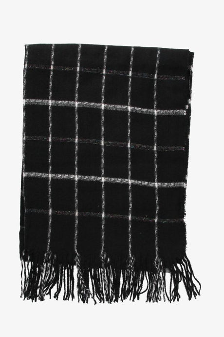 Black Checkered Scarf with White Lines