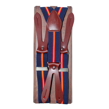 Blue elastic suspenders with Spanish flag decoration, 30 mm