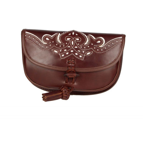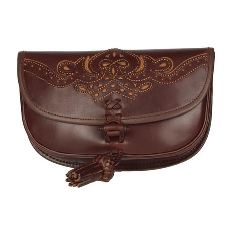 Rociero leather bag with tassel decoration and yellow thread Valverde del Camino