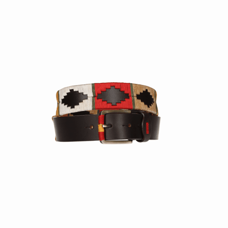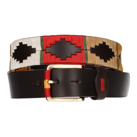 Cinturón marrón bordado mostaza-rojo