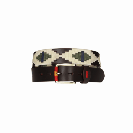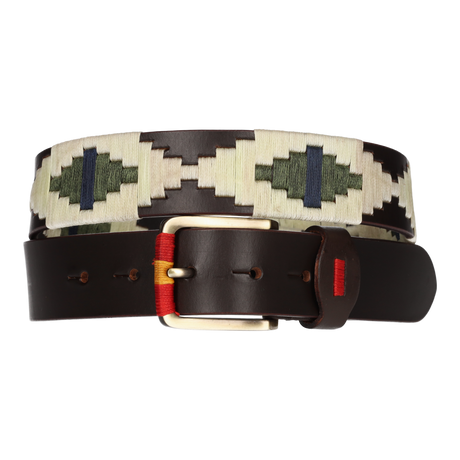 Cinturón marrón bordado verde y beige