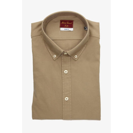 Beige Shirt with Green and Camel Checks