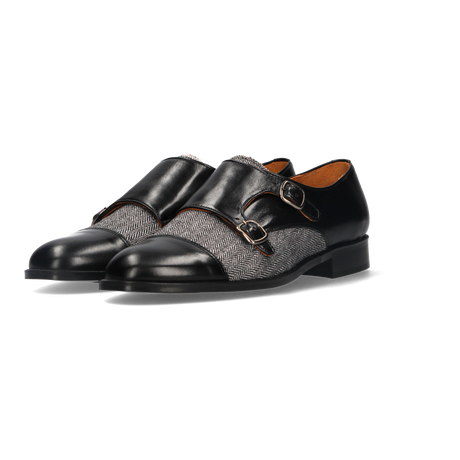 Black Double Buckle Spike Shoe