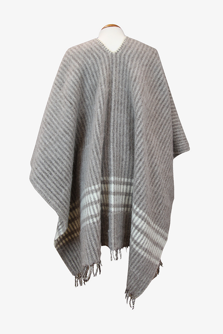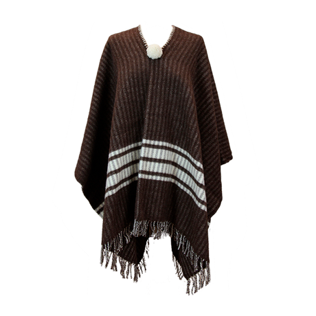 Dark Taupe Poncho with Wide Ecru Stripes
