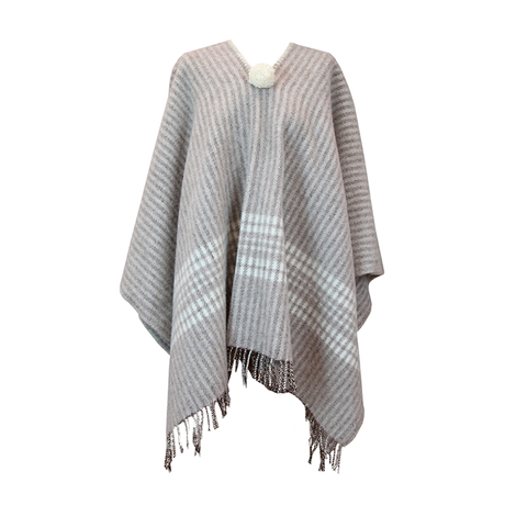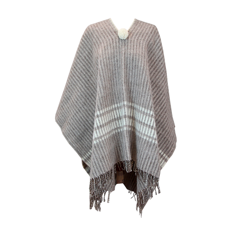 Taupe Poncho with Combined Stripes Ecru-Taupe