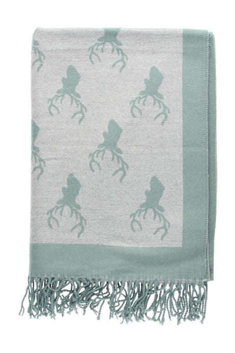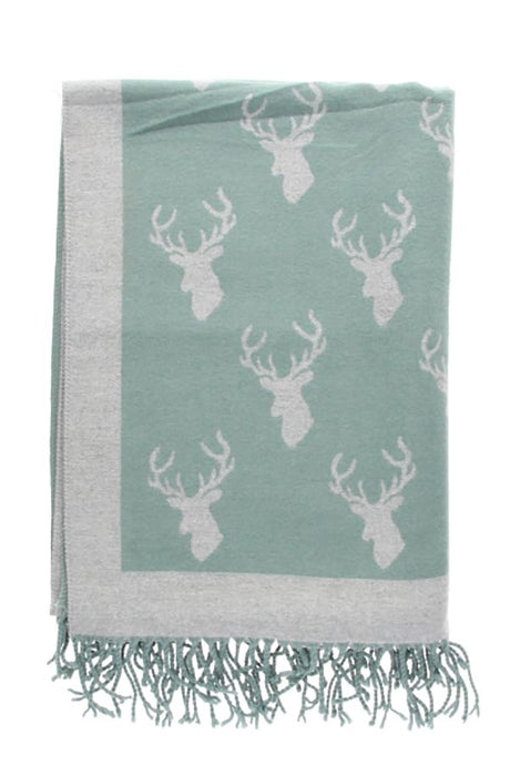 Reversible Scarf with Green/Gray Deer Print