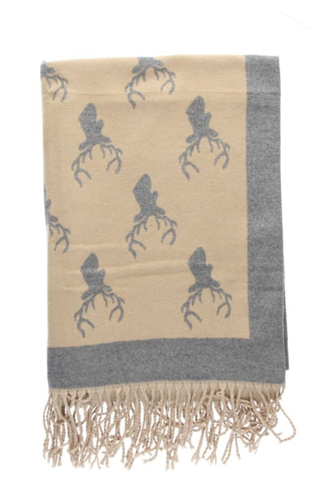 Reversible Camel/Grey Deer Print Scarf