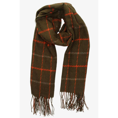 Green Plaid Scarf with Orange Lines