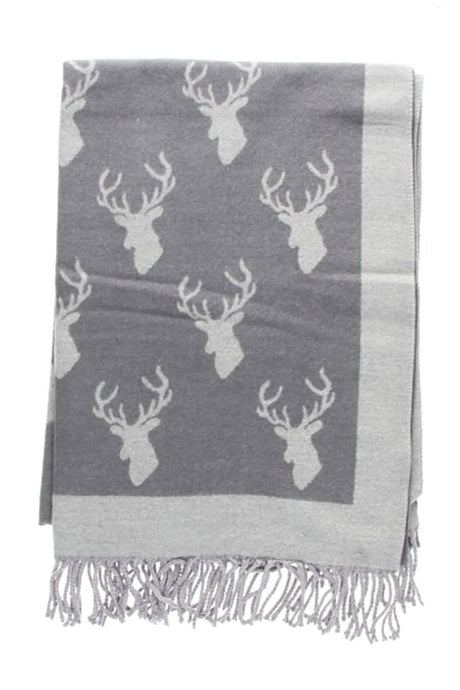 Reversible Scarf with Charcoal/Grey Deer Print