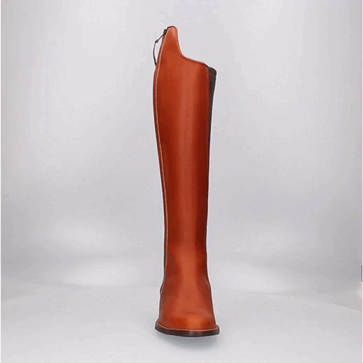 Work boot, in leather color, calfskin material, with neoprene on the side for added protection.