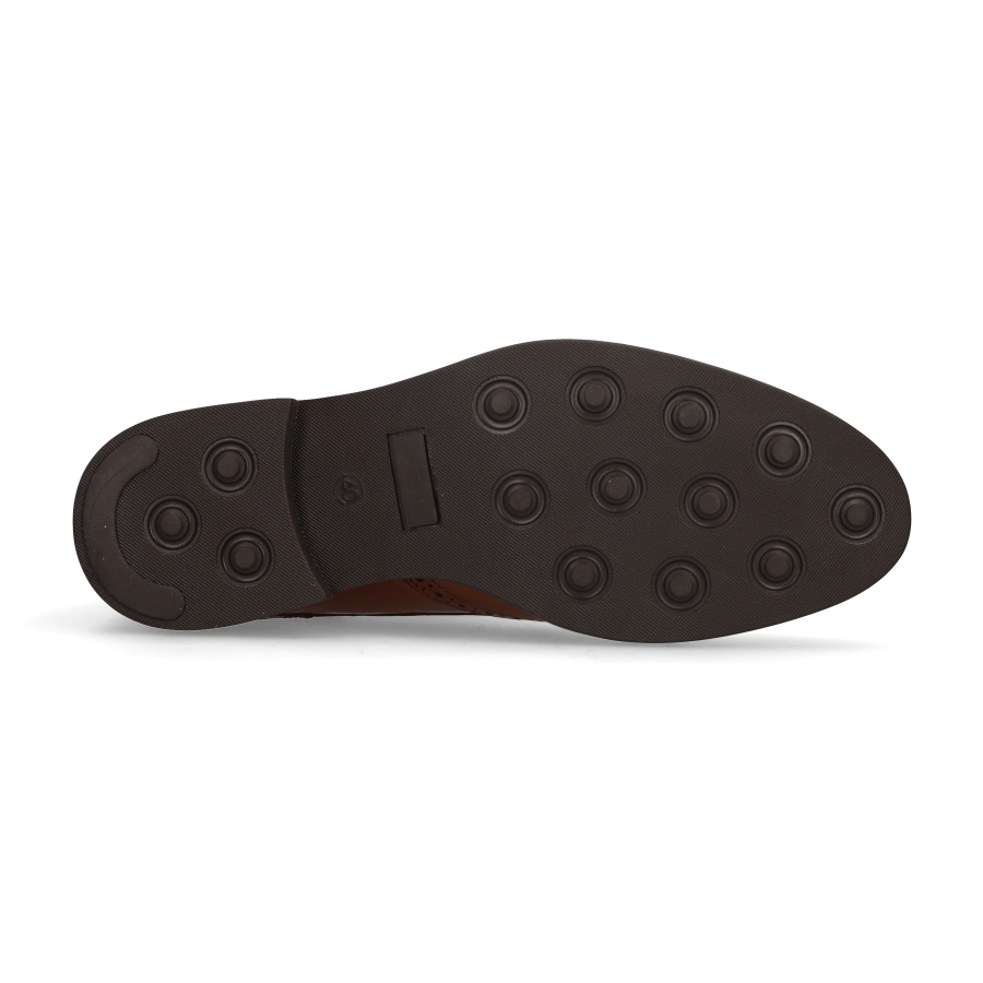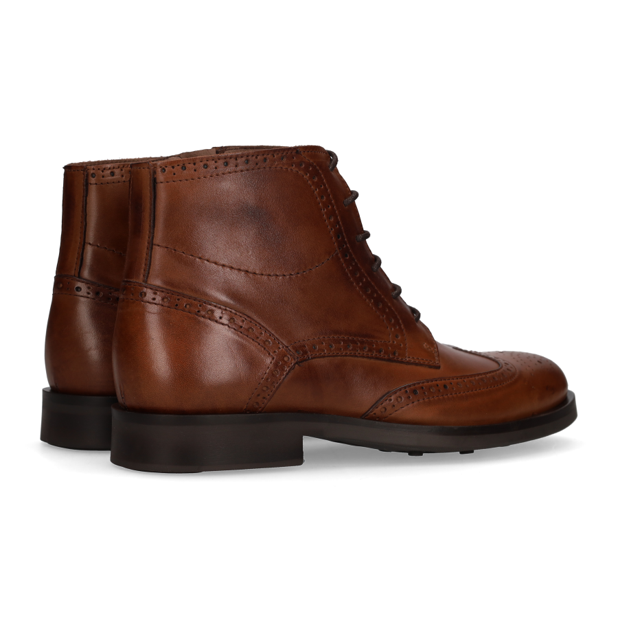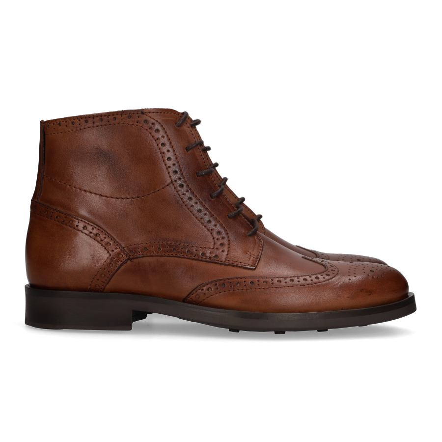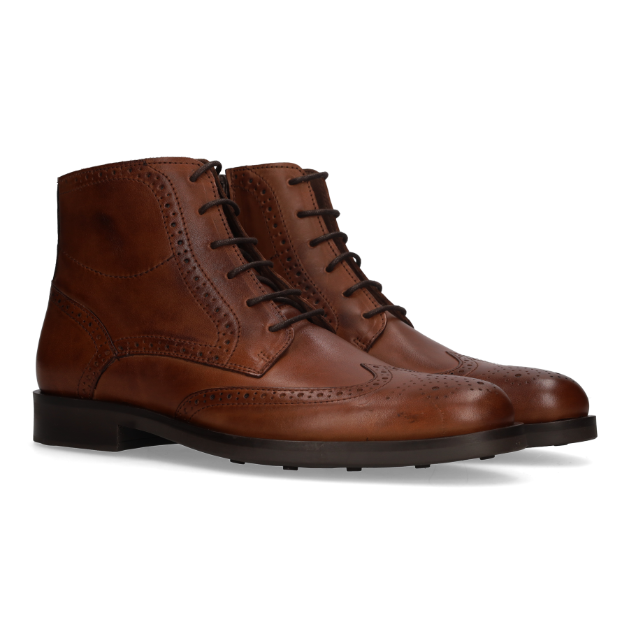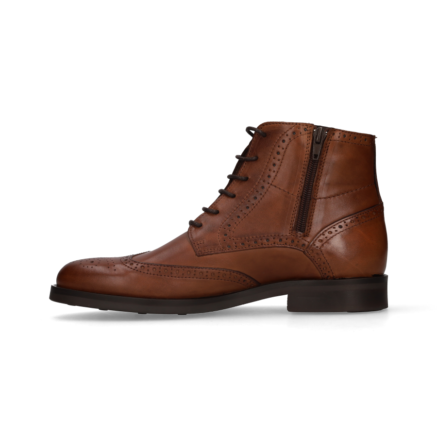Botín de caballero, con cordones y cremallera, picado maría, color cuero, piso de goma.