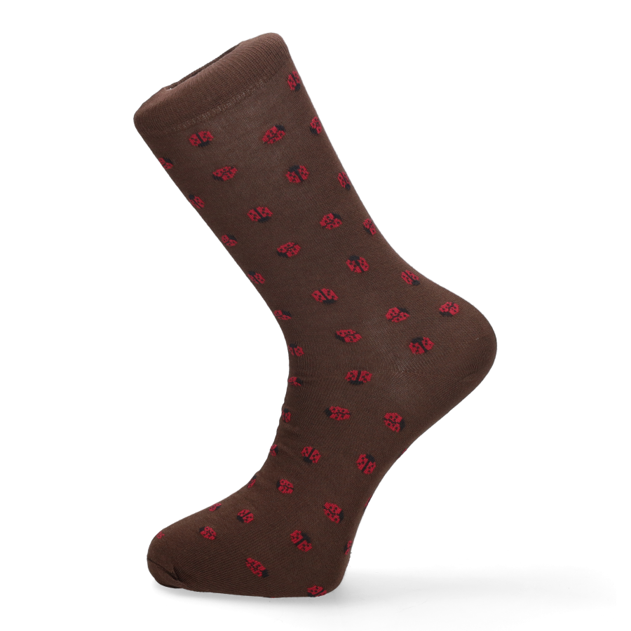 Calcetín de caballero marrón con mariquitas. Oferta 3 x 2. Talla M (35-40) y talla G (41-46)