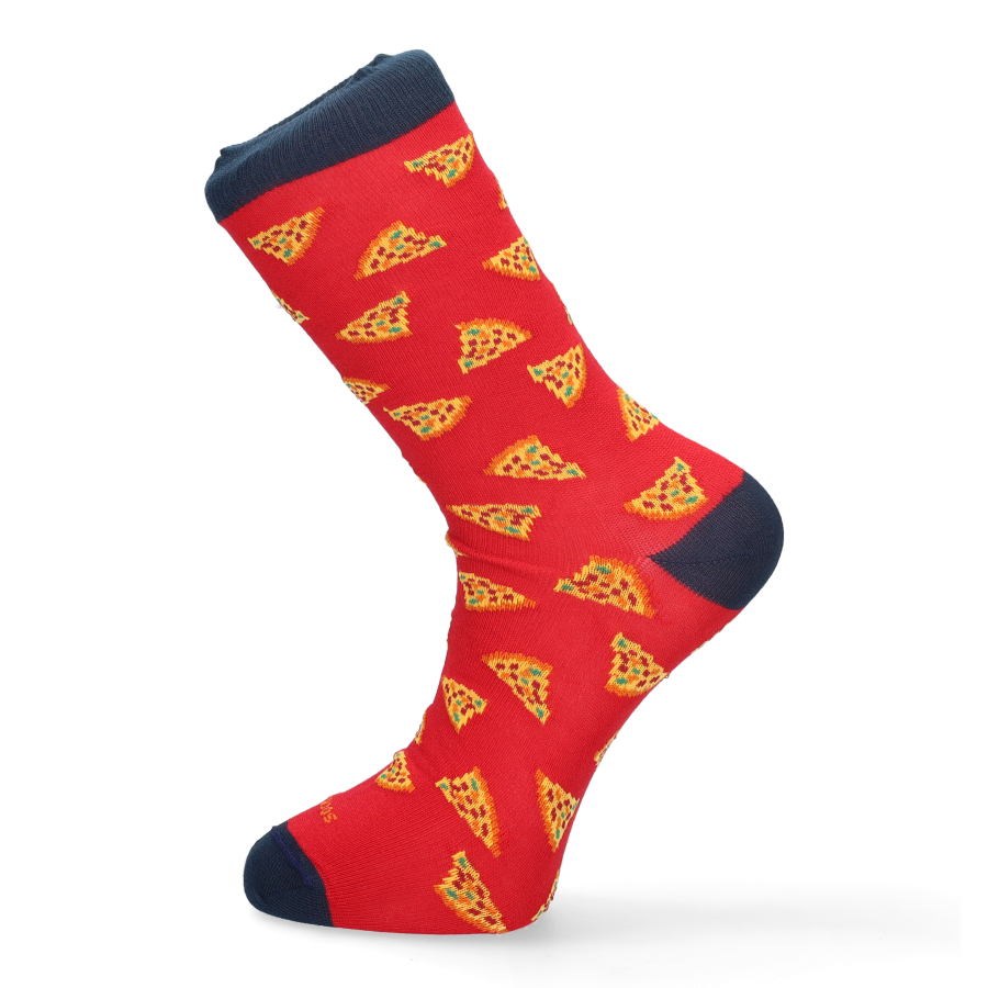 Calcetín de caballero tonos rojos con adorno de pizzas. Oferta 3 x 2. Talla M (35-40) y talla G (41-46)