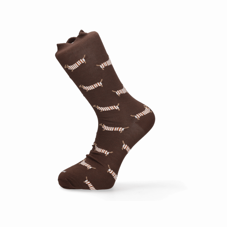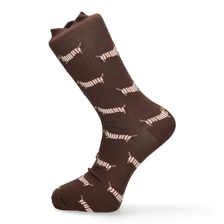 Calcetín de caballero tonos marrones con Teckel´s. Oferta 3 x 2. Talla M (35-40) y talla G (41-46)