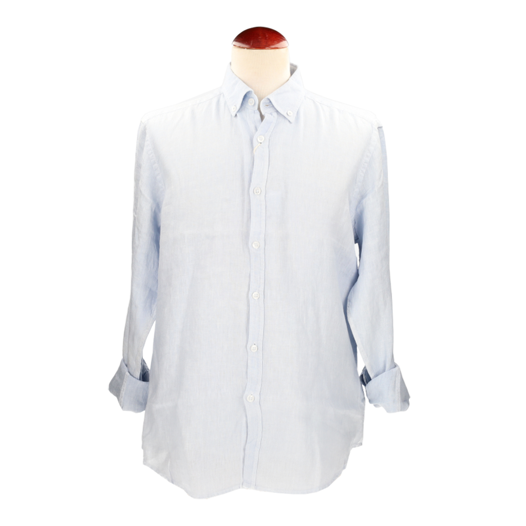 Light blue linen button-down shirt. Composition: 100% linen. Care instructions: Wash in cold water, do not bleach, iron at low temperature, do not tumble dry.