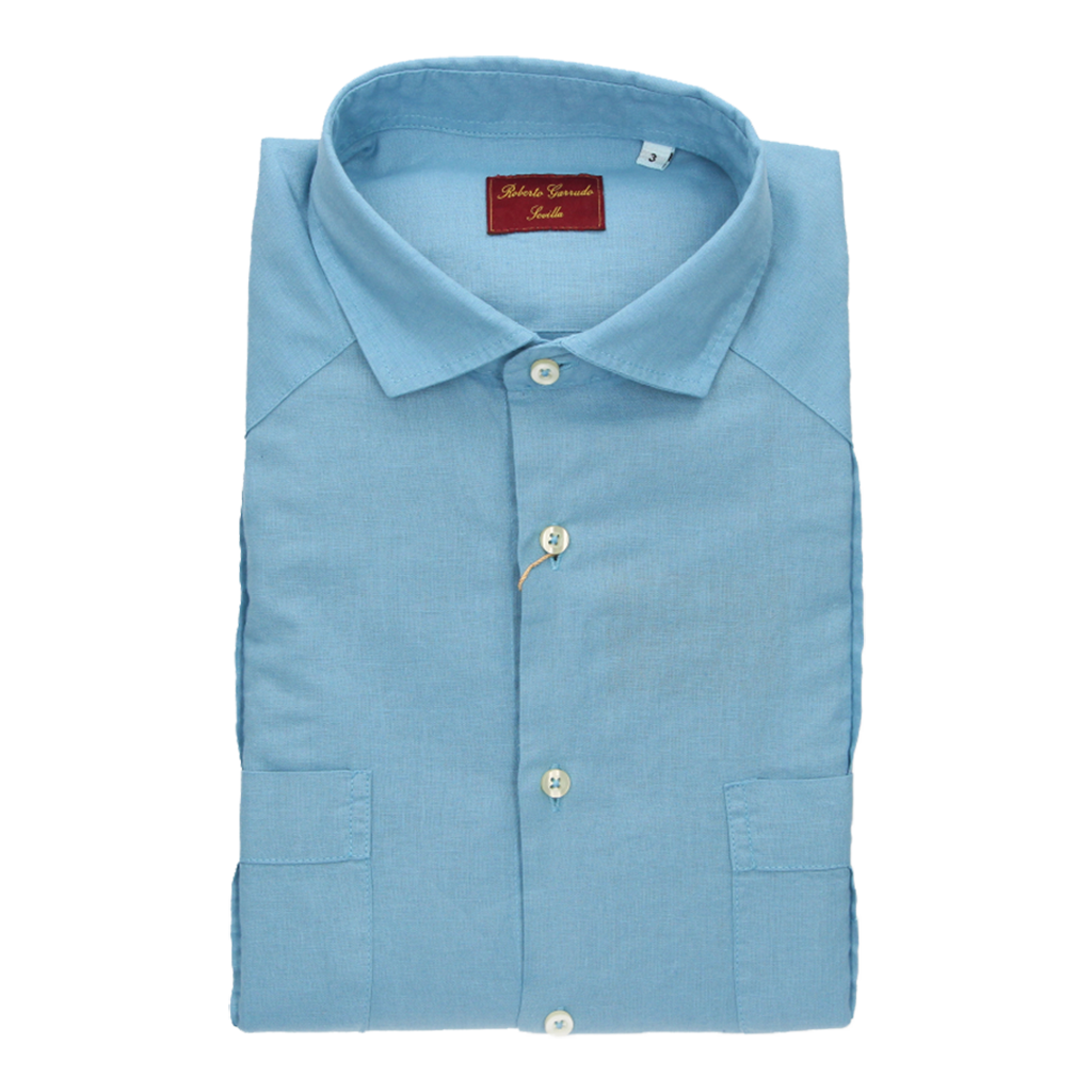 Men's Cuban shirt in light blue. 50% linen, 50% cotton.