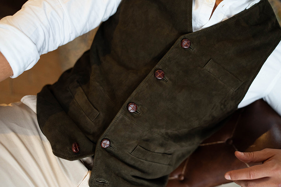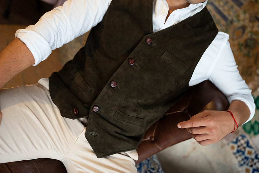 Chaleco piel vuelta verde - 38 / GREEN is backordered and will ship as soon as it is back in stock.