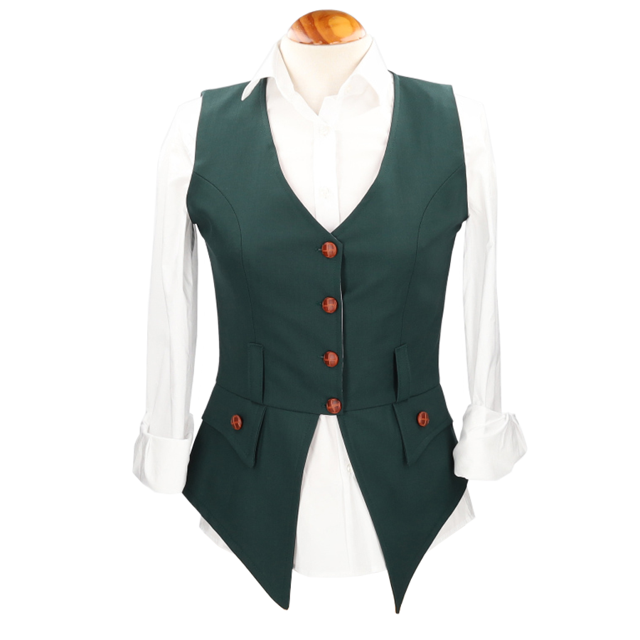 Women's Diana vest, by Claudia Baelo, in green. Belt loops. Button closure. Ruffled. Composition: 97% polyester, 3% spandex.