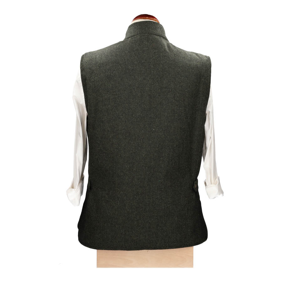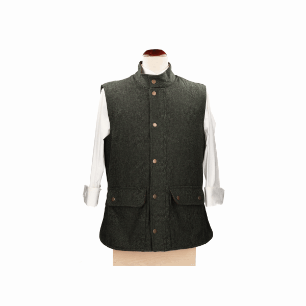 Chaleco de Roberto Garrudo sin mangas polar con estampado de espiga en color verde. Cierre con cremallera y botones. Contiene bolsillos y unos broches a los lados para poder entallarla un poco.