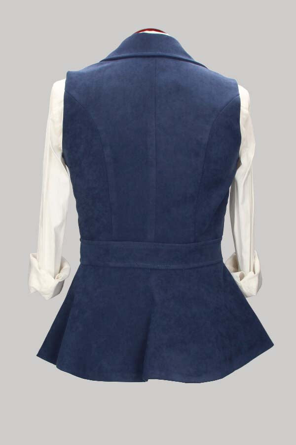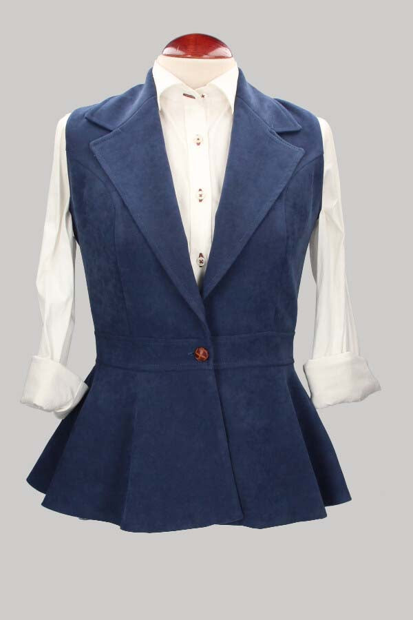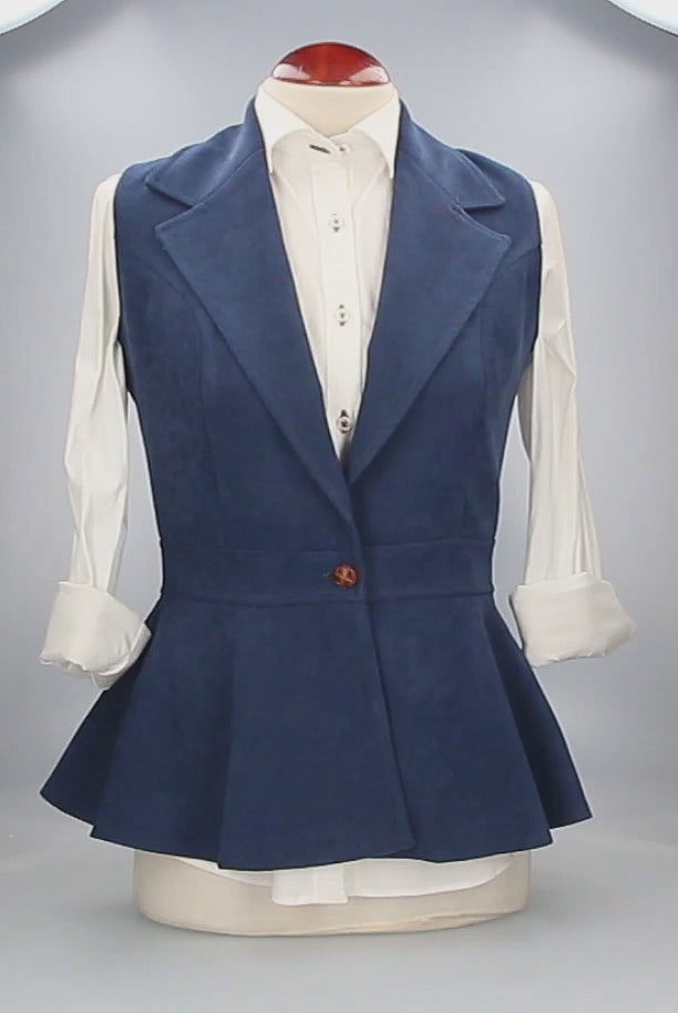 Chaleco de mujer, de la marca Claudia Baelo, modelo Oporto, color azul, con un botón.