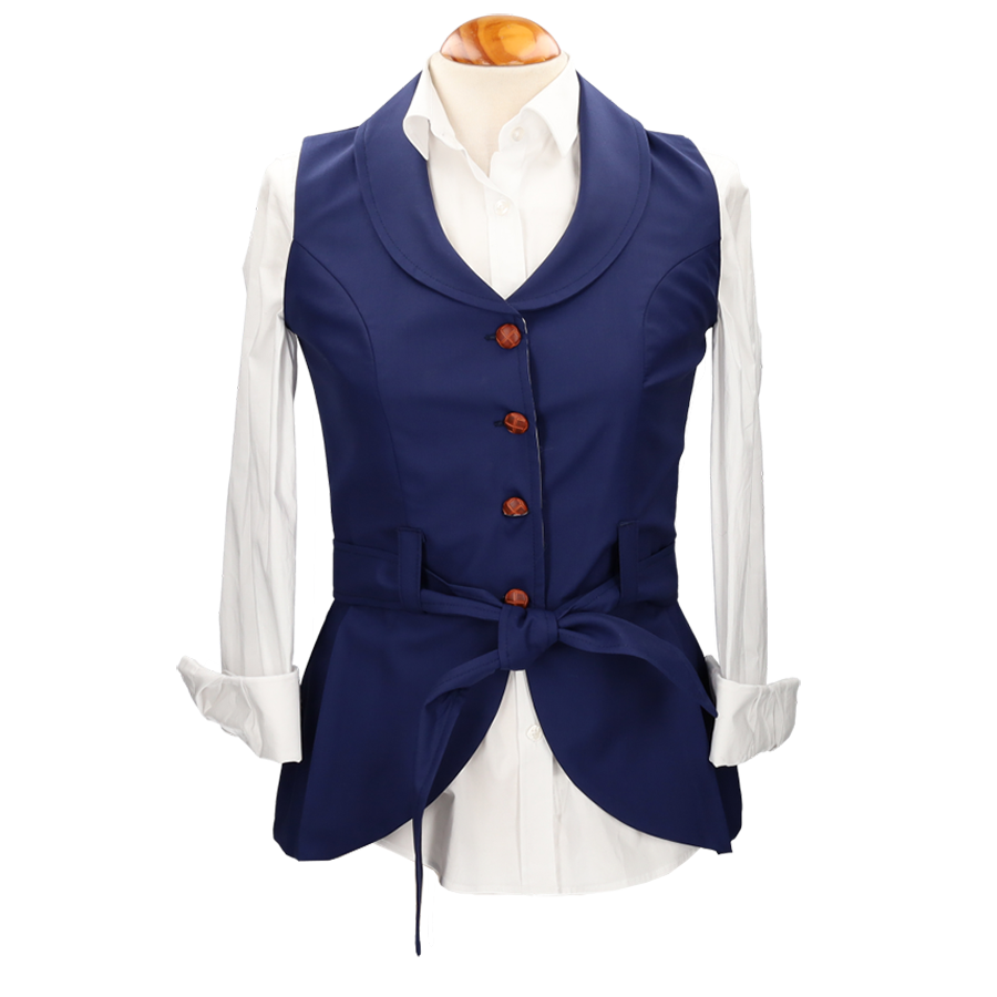 Chaleco de mujer, de la marca Claudia Baelo, modelo Pandora, en color azul. Cierre con botones.