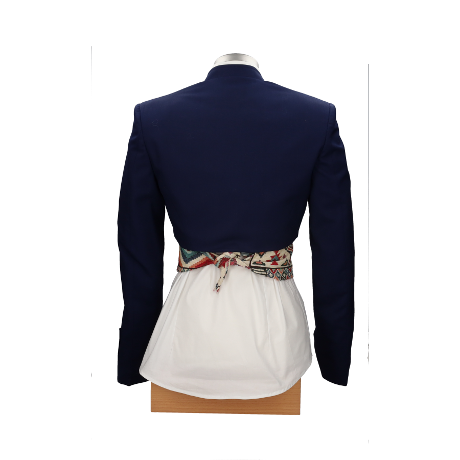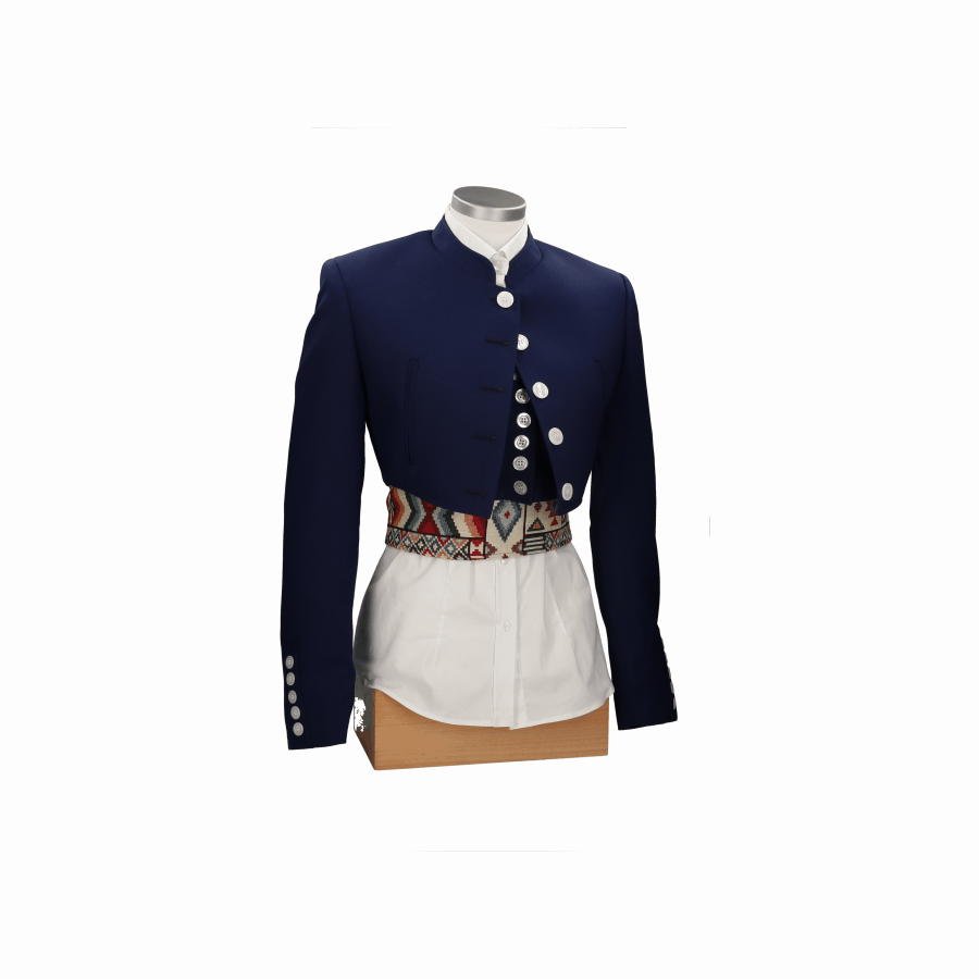 Chaqueta y chalequillo de traje de corto de mujer, tejido Telfor en color tinta. El color visualizado en pantalla, puede variar levemente del color del tejido, debido a la pantalla utilizada.