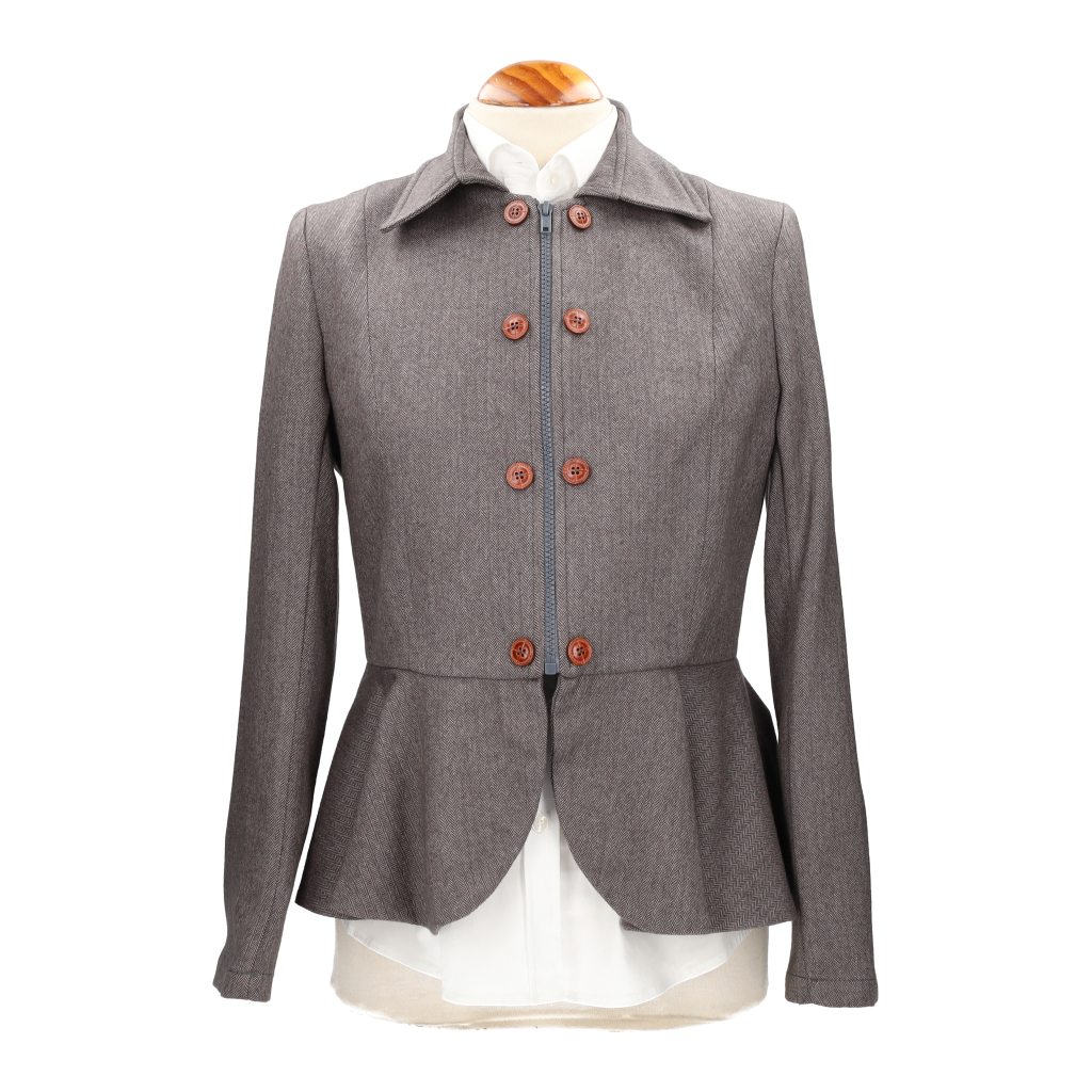 Chaqueta de mujer, de la marca Claudia Baelo, modelo Tavira, en color marrón, tejido de espica. El cierre es de cremallera y lleva botones a cada lado para adornar la prenda. El tejido es una mezcla marrón que resulta muy agradable al tacto, y muy confortable a la hora de usar la prenda.