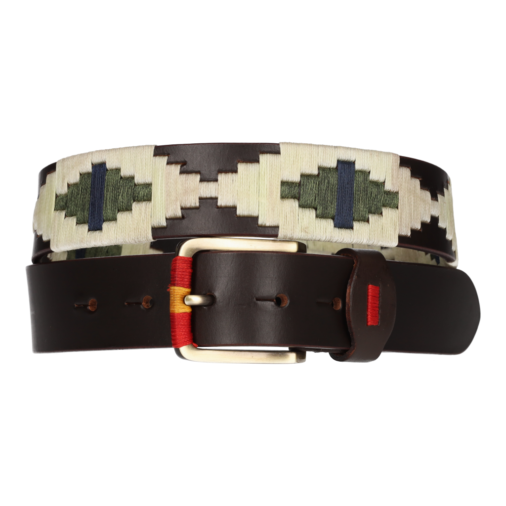 Cinturón marrón bordado verde y beige - 95 / JP0041 is backordered and will ship as soon as it is back in stock.