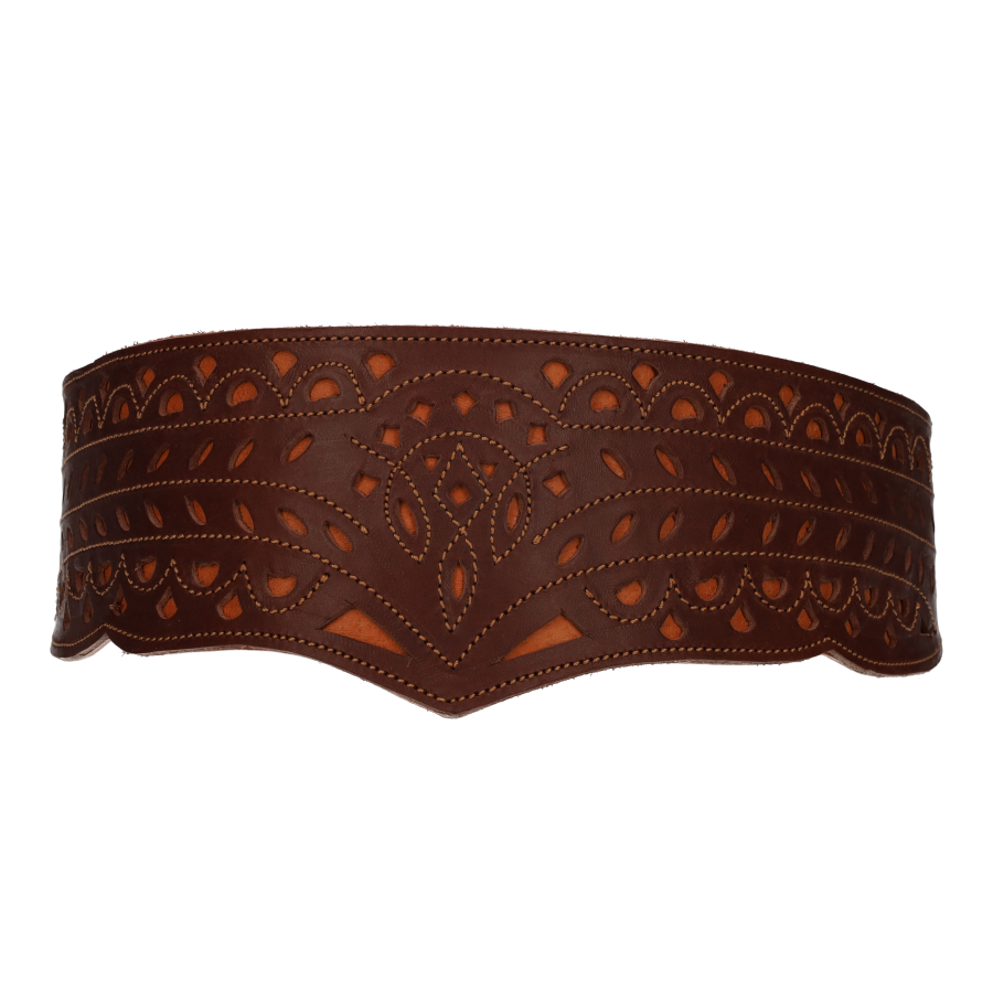 Fajín de señora, piel de ternera, color cuero, adorno picado con fondo picado