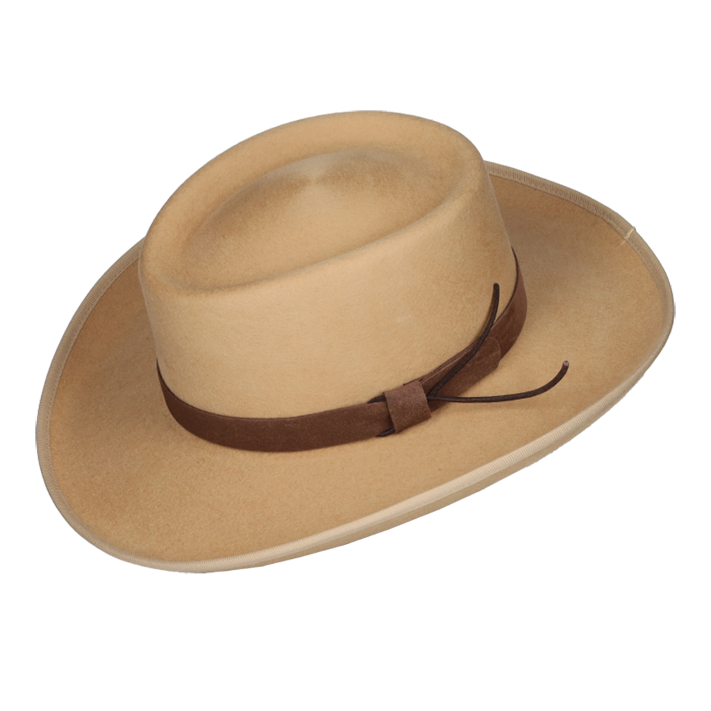 Sombrero tipo gambler en lana nutria y con la cinta en cuero.