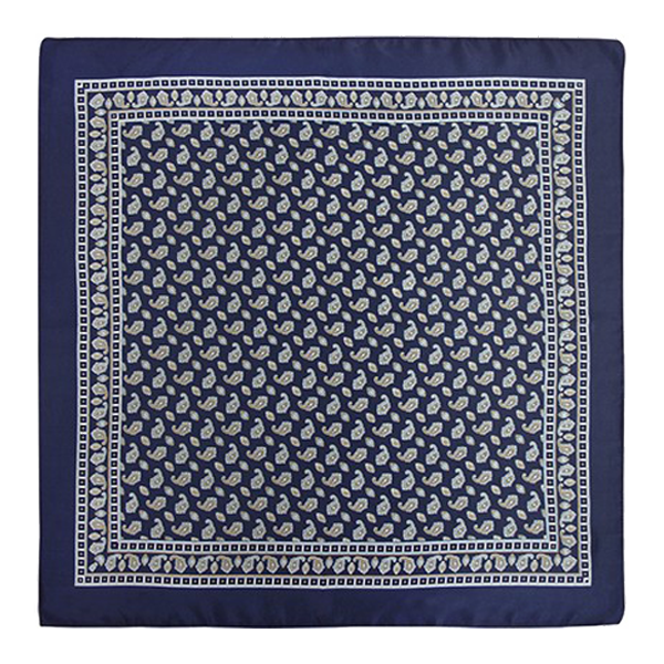 Pañuelo de poliester, color marino con adonos cachemir, tamaño 53 x 53