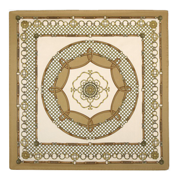 Polyester scarf, beige with chains, size 53 x 53