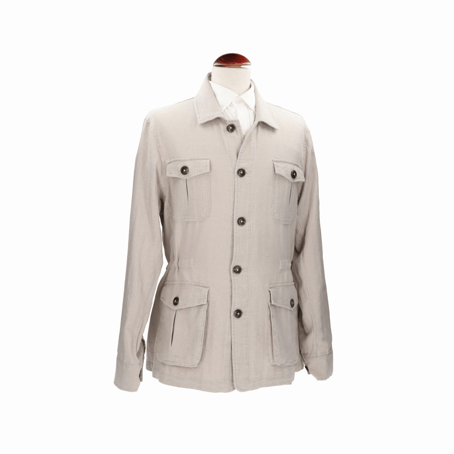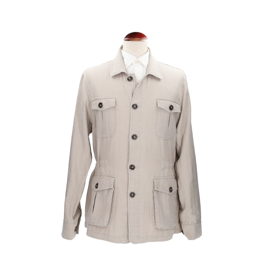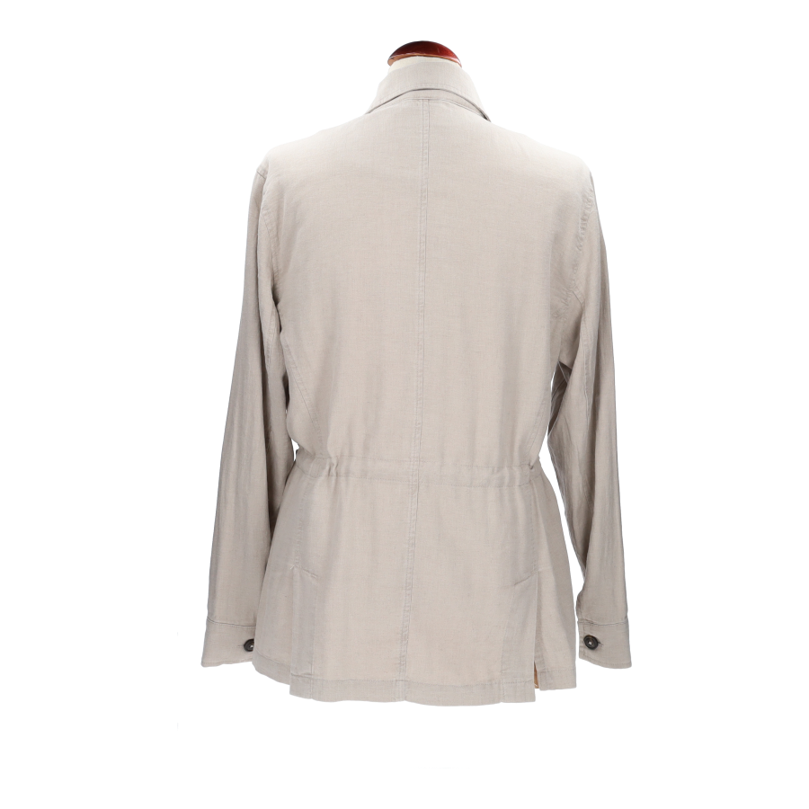 Parka modelo Texas, con cuatro bolsillos y botones, en color beige. Cierre de hebilla en el cuello. Composición: 60% lino 40% algodón.