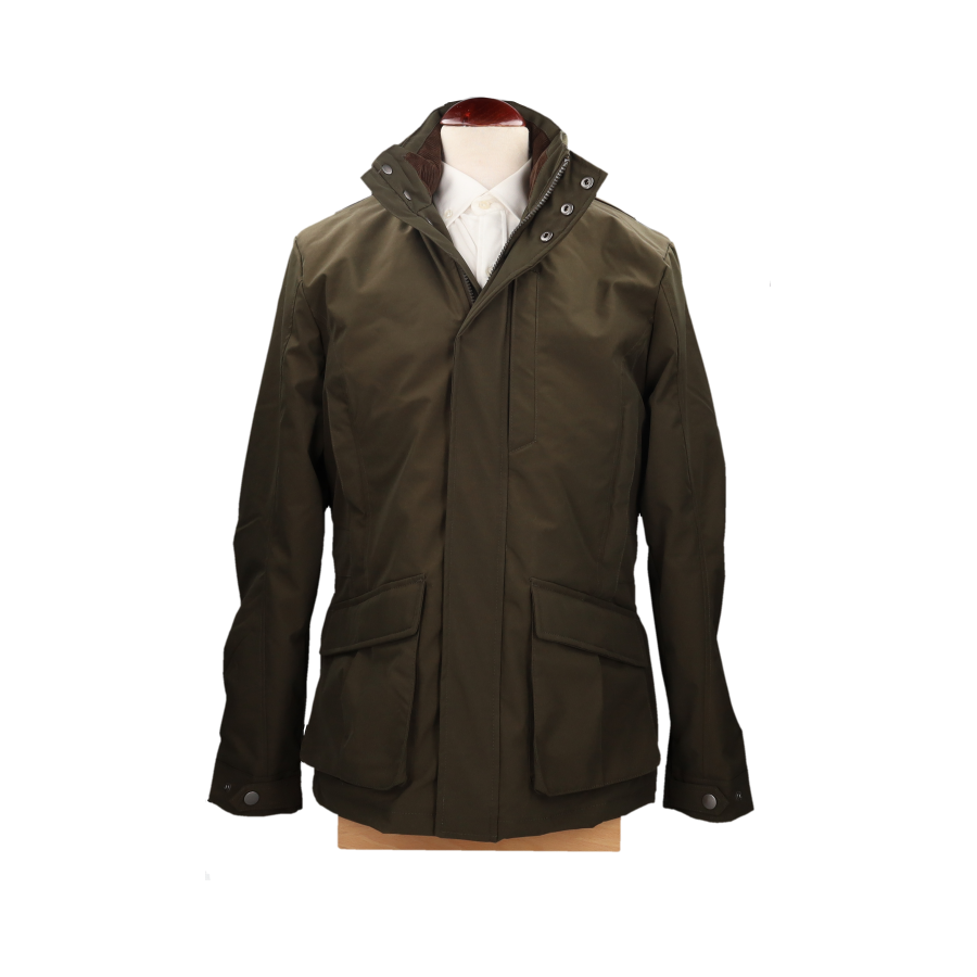 Parka de caballero, modelo Veneto, en color kaki,abrochada con cremallera interior y botones, ajustable en la cintura.