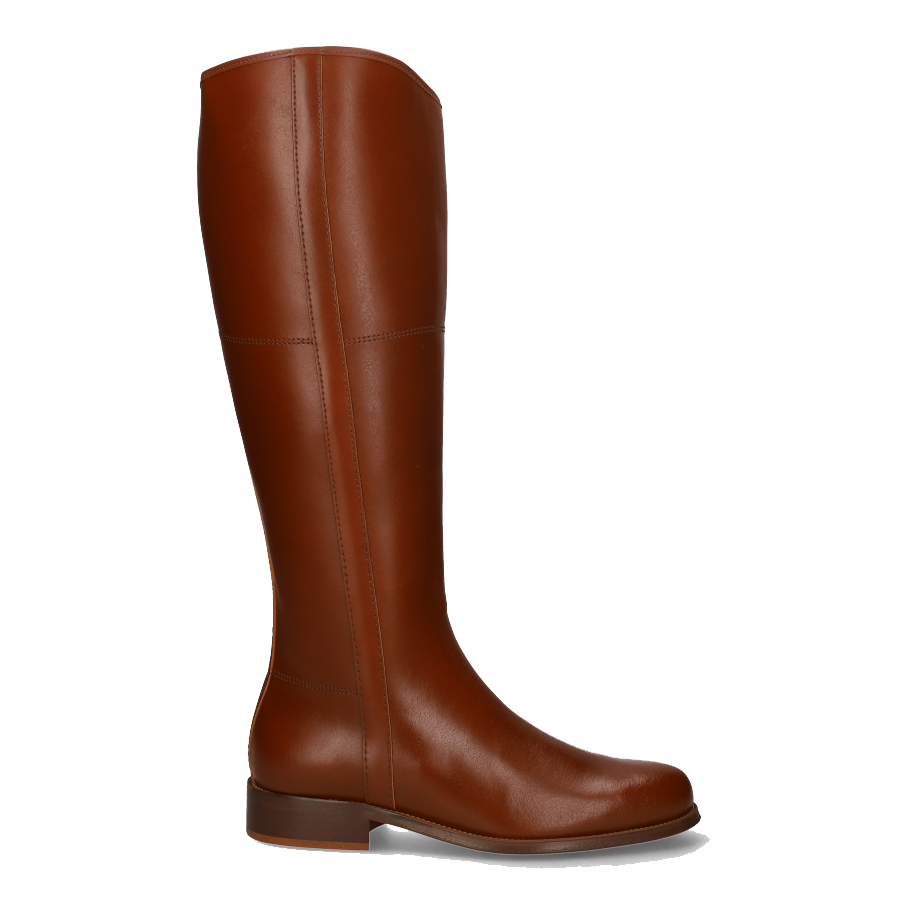 Wide-fit cowboy boot with zipper, stitched leather sole, old leather color.