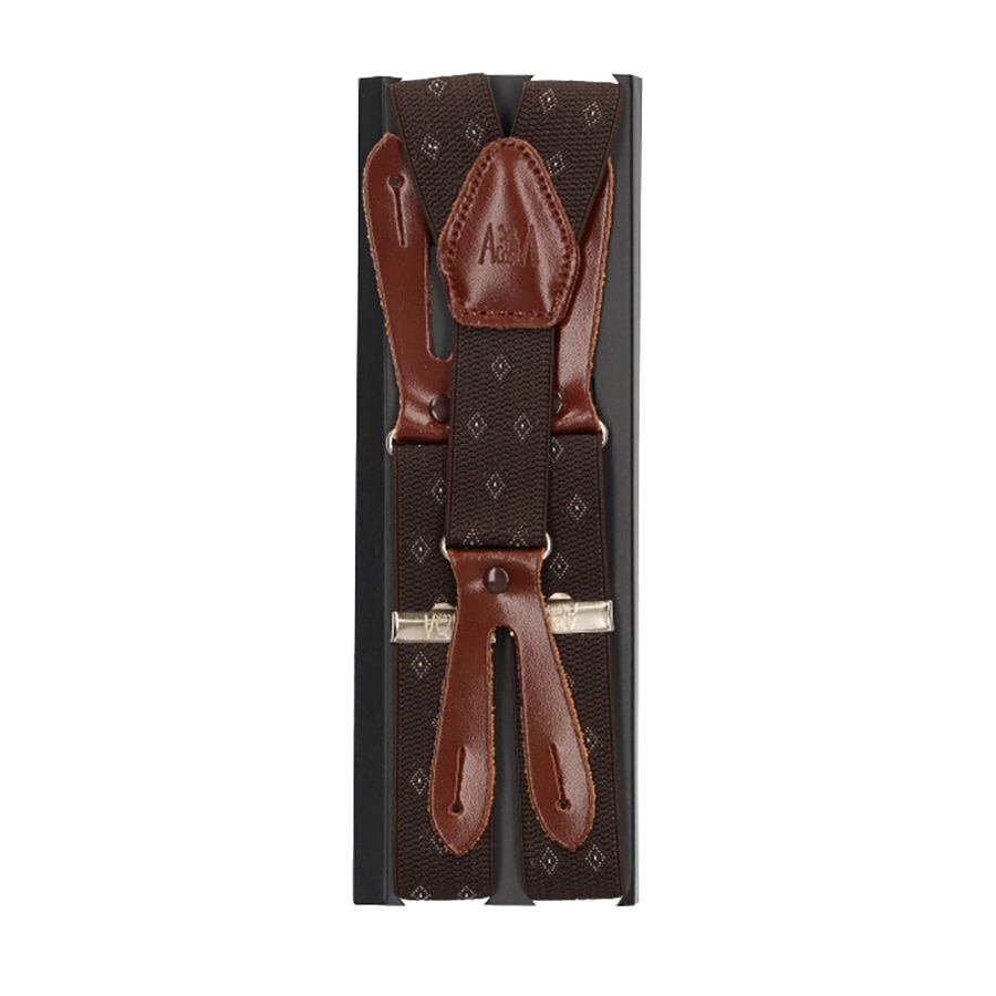 Children's Elastic Suspenders Brown Herringbone Pattern 25 mm
