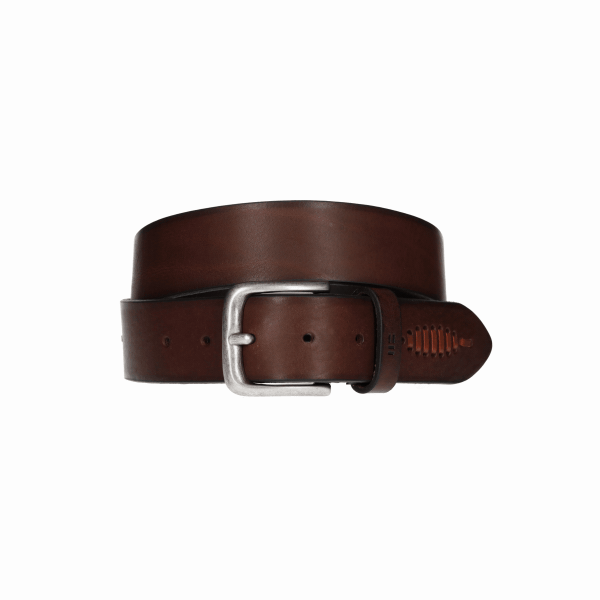 Cinturón en color marrón oscuro con adorno de trenzado en la punta