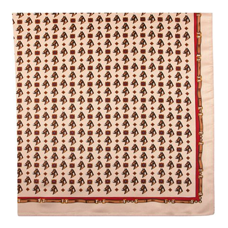 Écharpe ornementale en cachemire bleu avec bordure beige