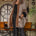 Poncho taupe à rayures, combinaison taupe brut