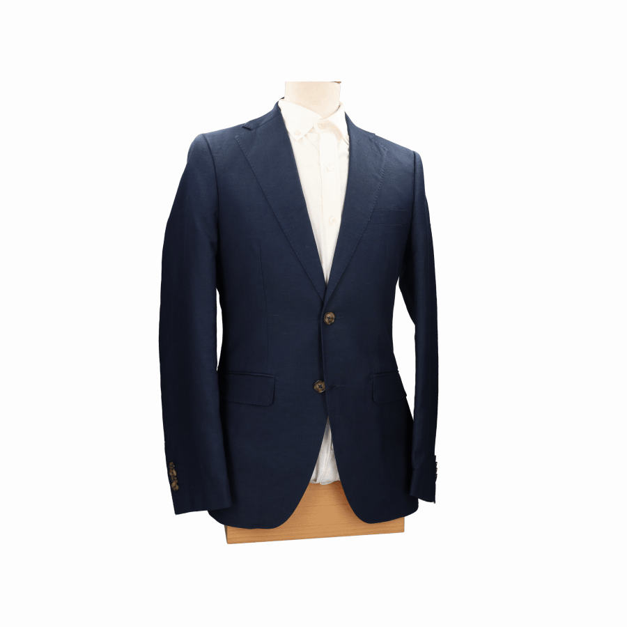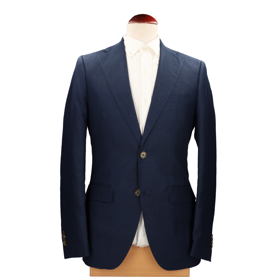 Americana de caballero, en color azul marino. Composición: 90% lino 10% poliéster.
