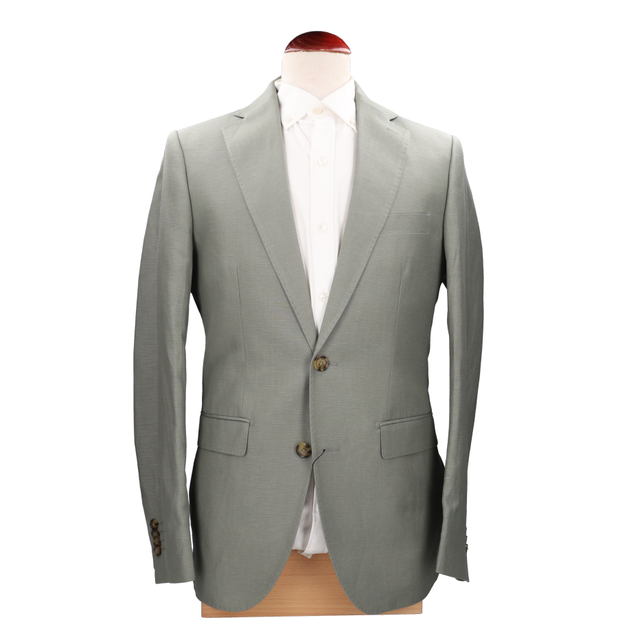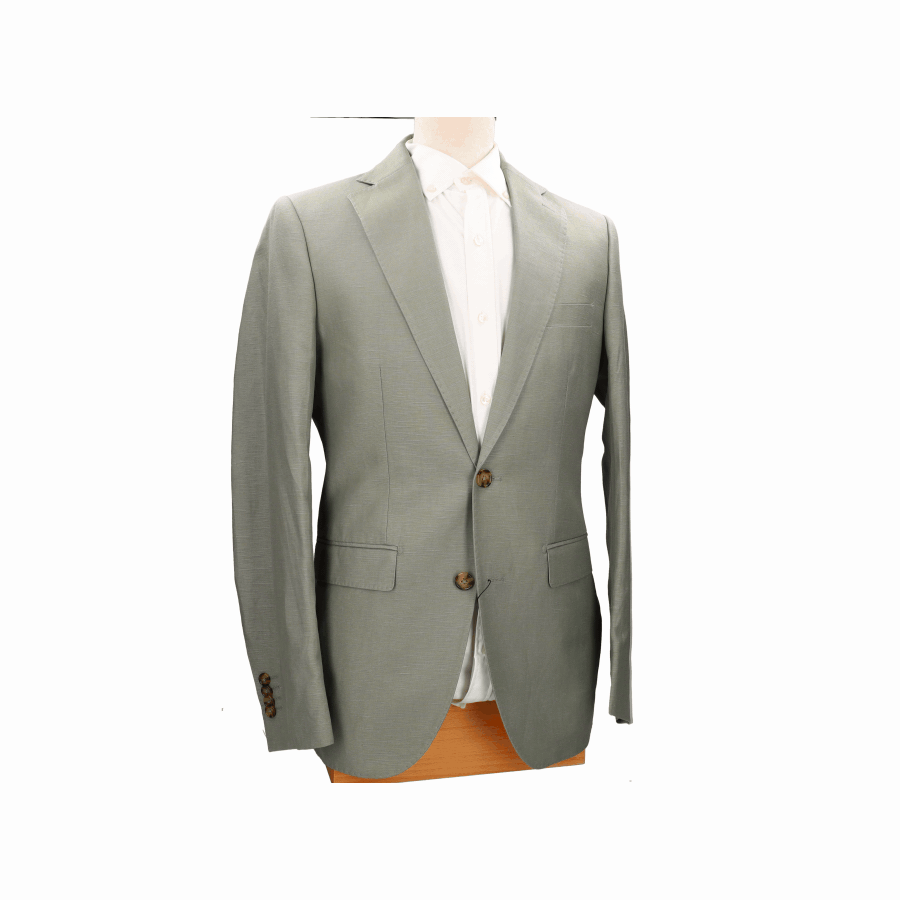 Americana de caballero, en color verde. Composición: 90% lino 10% poliéster.